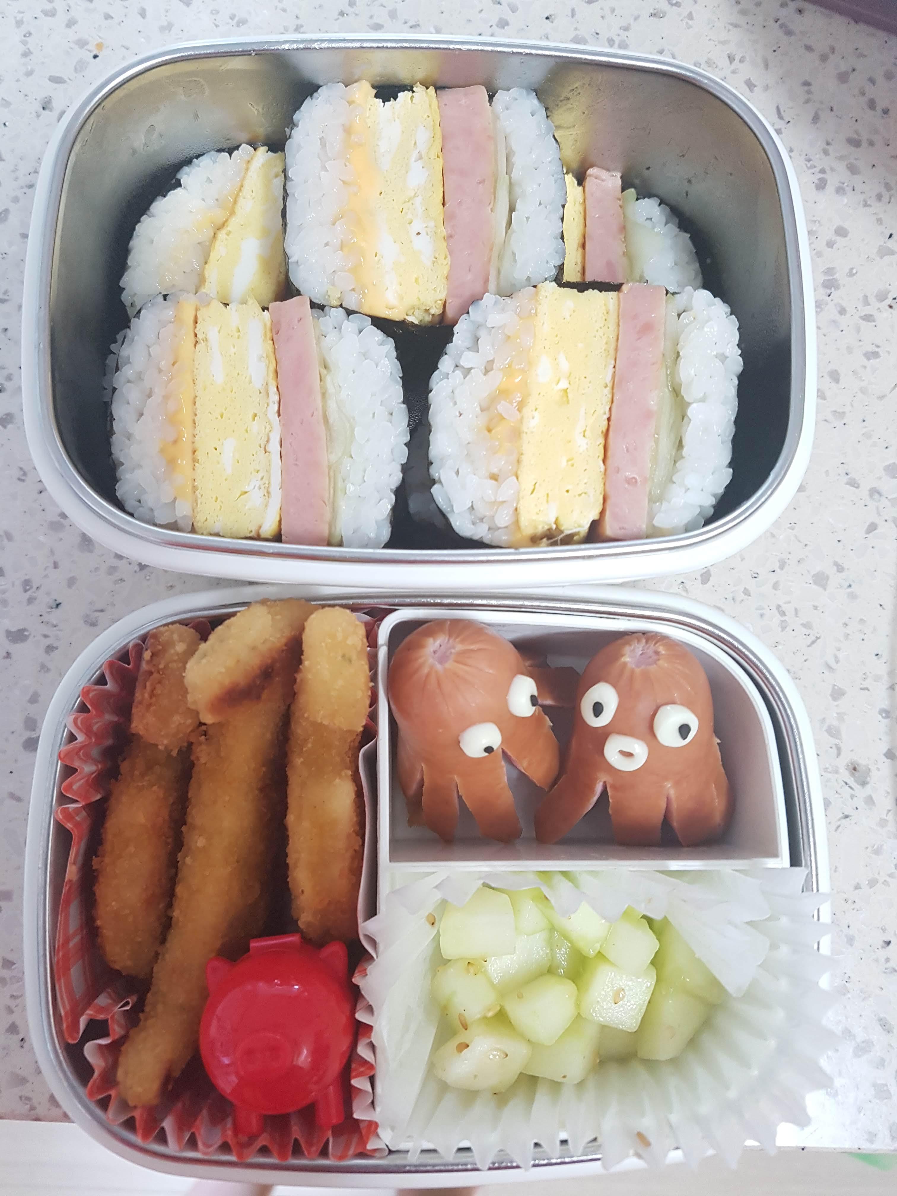 너무 힘든날이나 시간이 부족한날에는 소세지 문어에 동그란 주먹밥에