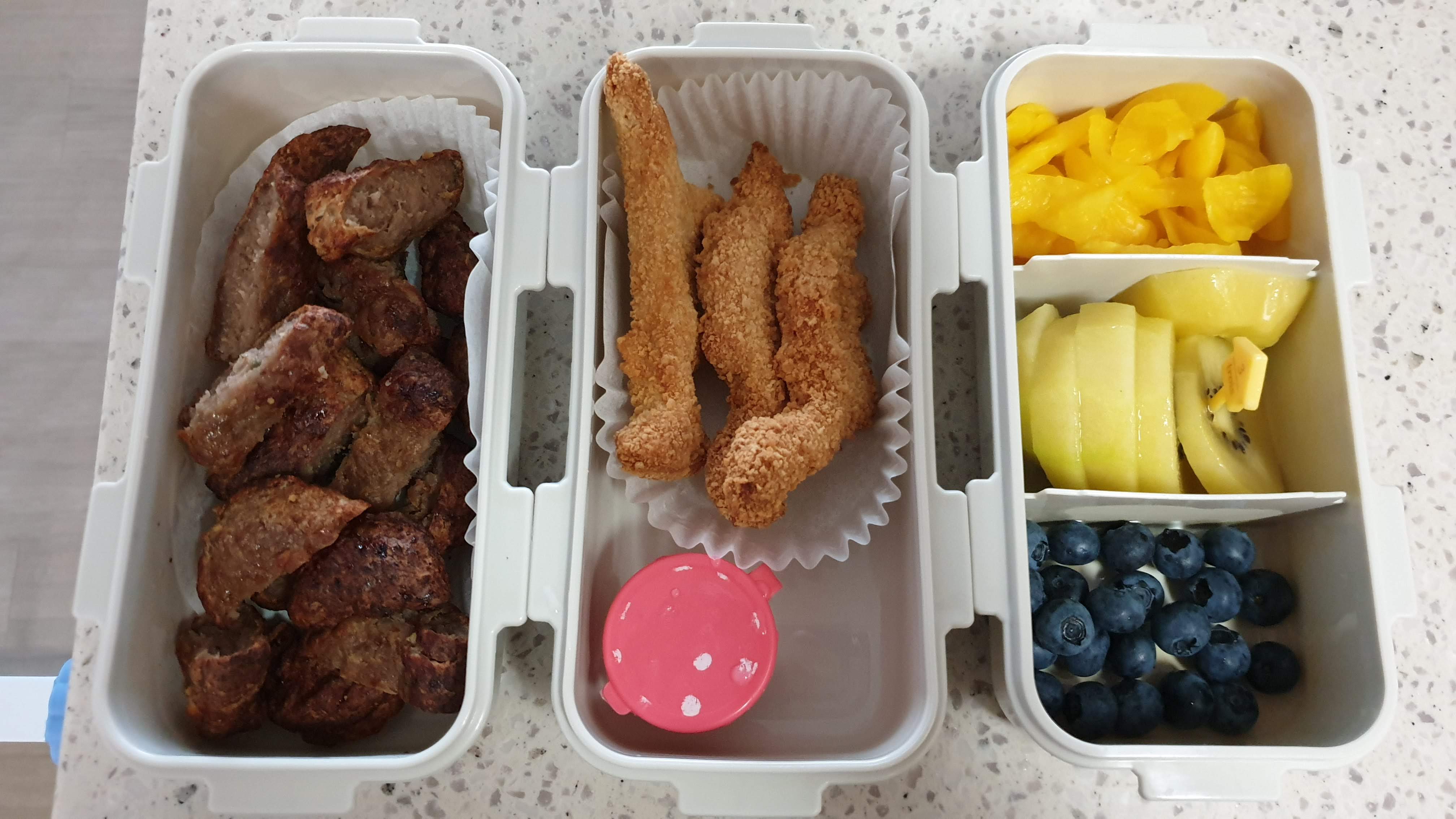 별도로 과일이나 간식을 포장해서 아이에게 편히 먹을 수 있도록 만들어 주세요.
