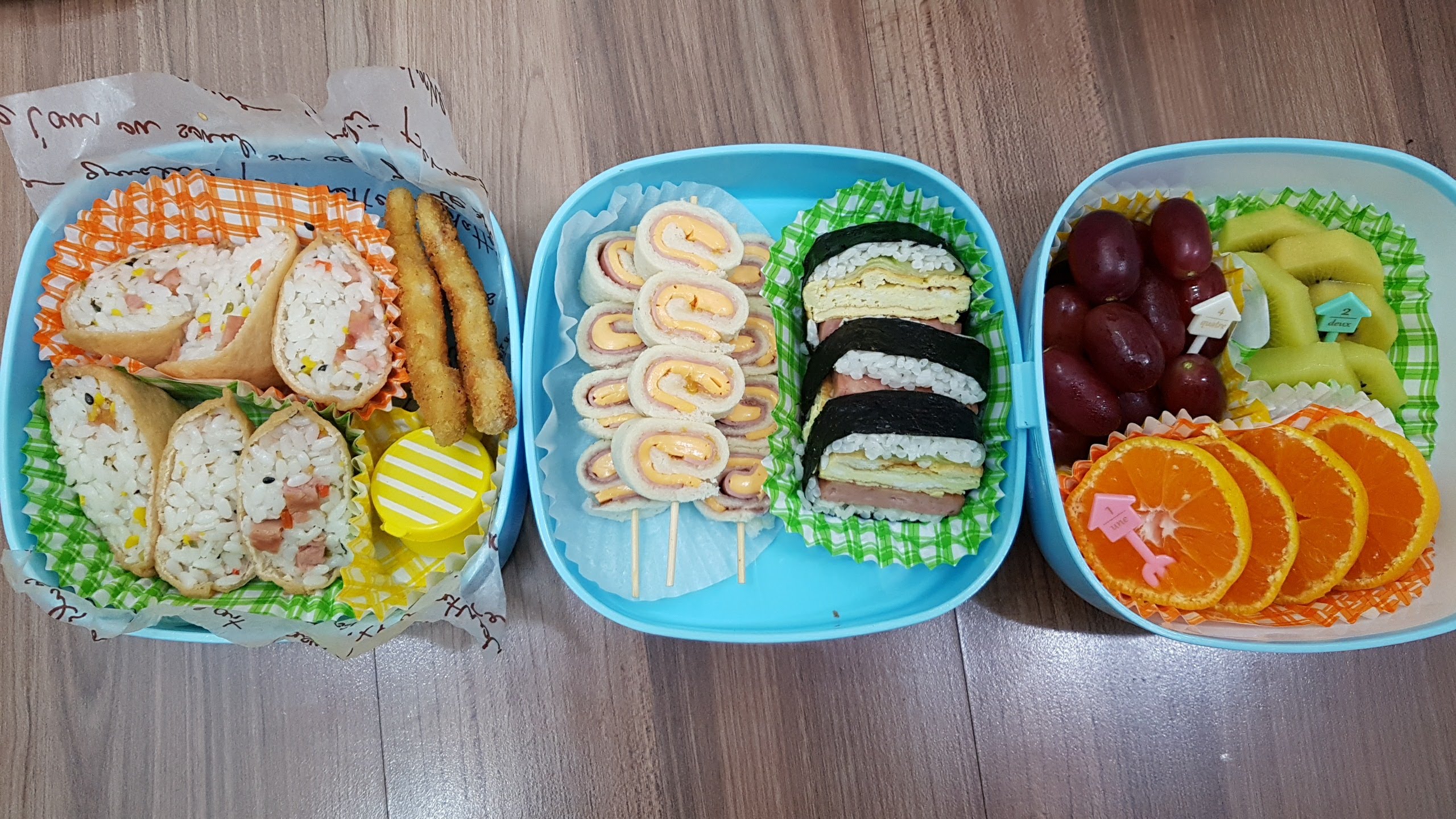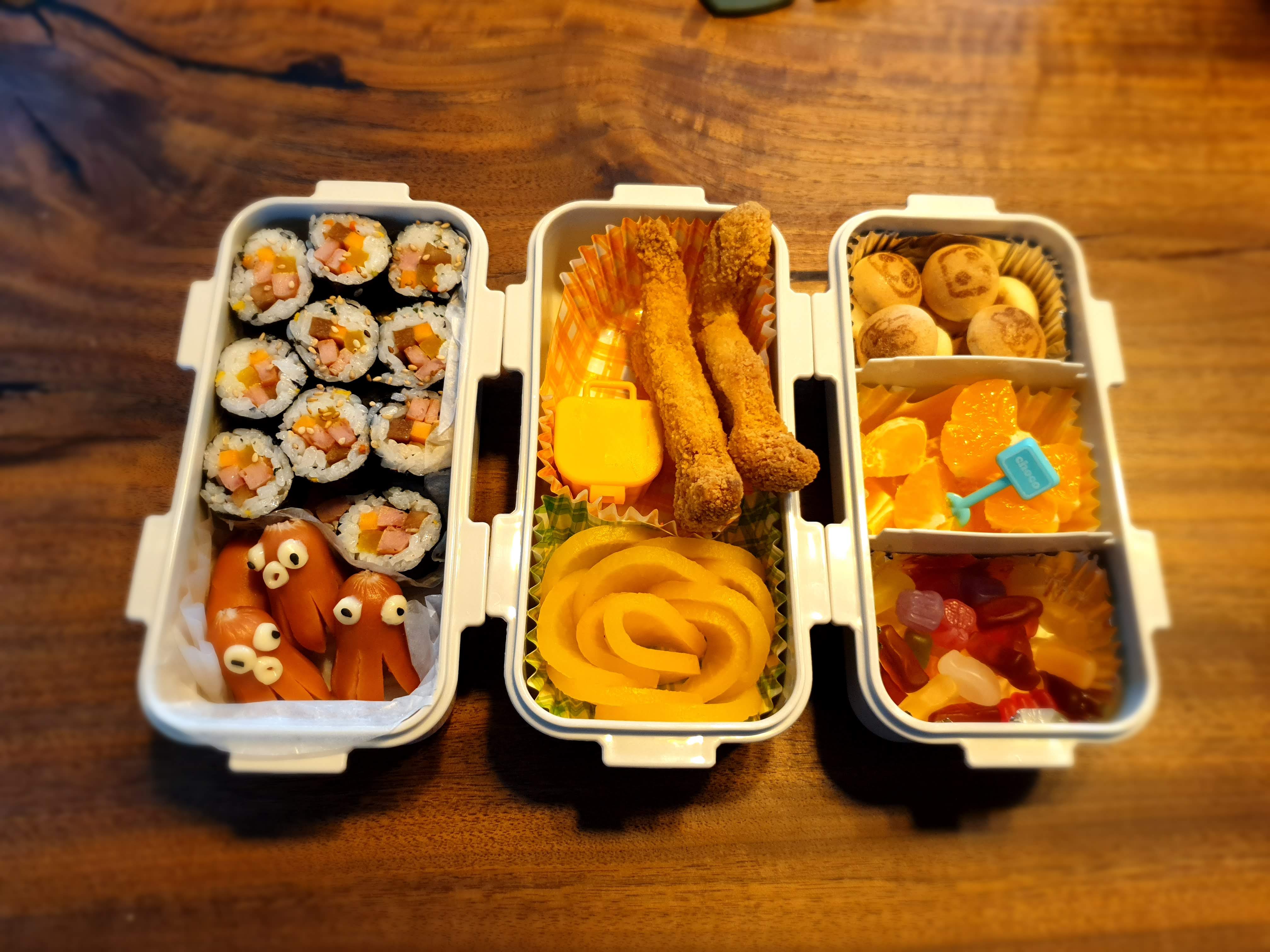 ㄴ A: 공간이 제한된 만큼, 간단한 꼬마주먹밥과 먹기 쉬운 과일, 그리고 데코픽 간식 아이템 위주로 구성해 보세요.